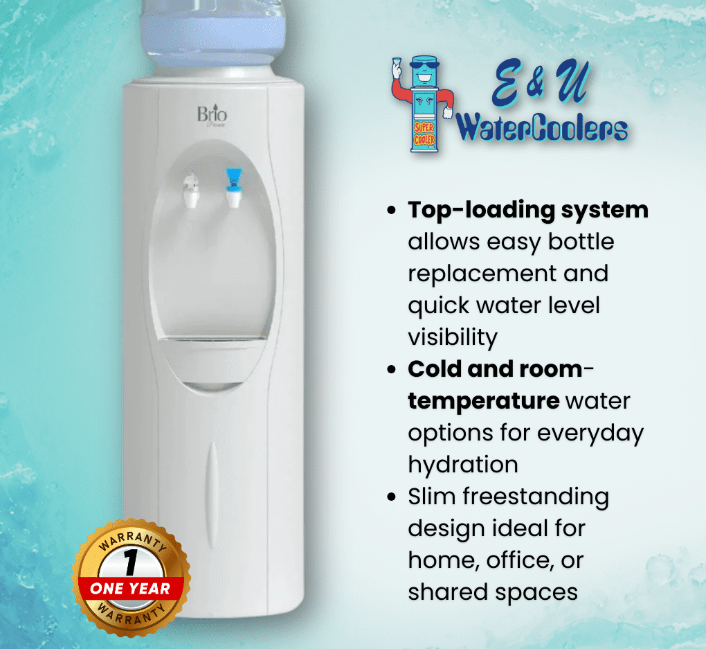 The Brio Top-Loading Water Cooler provides reliable access to room-temperature and cold drinking water in a durable, easy-to-use design. Ideal for homes, offices, and shared spaces, this cooler offers consistent cooling performance without the need for hot water functionality.
