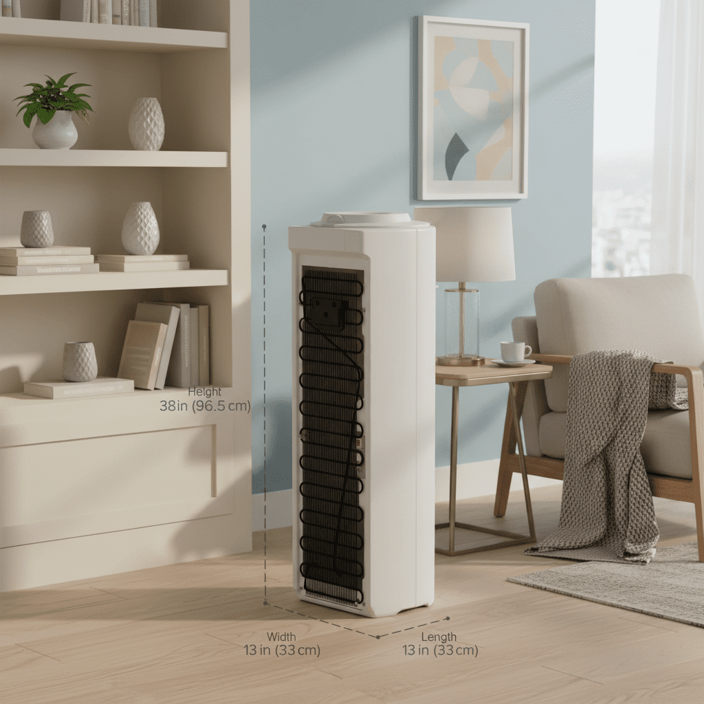 Designed with a spill-resistant top-loading system, the dispenser allows for easy bottle replacement and clear visibility of water levels. A tall dispense height makes filling larger bottles and pitchers convenient, while internal stainless steel reservoirs help maintain water quality and long-term durability.